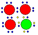 Al semiconduttore si aggiungono impurità costituite da atomi con 3 elettroni nello strato esterno (es. boro). Il boro non può combinarsi in modo perfetto con il silicio, perché ha un elettrone in meno nello strato esterno. In questo caso si determina una mancanza di elettroni, detta lacuna, in grado di catturare elettroni e per questo si assimila ad una carica positiva. Un elettrone catturato da una lacuna determina un'altra lacuna perché lascia vuoto il posto occupato in precedenza. E' come se la lacuna si spostasse in direzione opposta al movimento dell'elettrone. |
