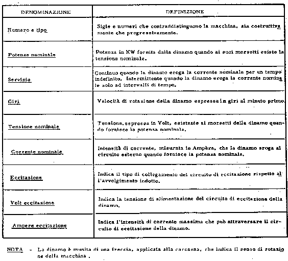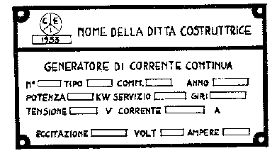 Un tipo di targa di dinamo, conforme alle norme C.E.I. , è riportato in figura: